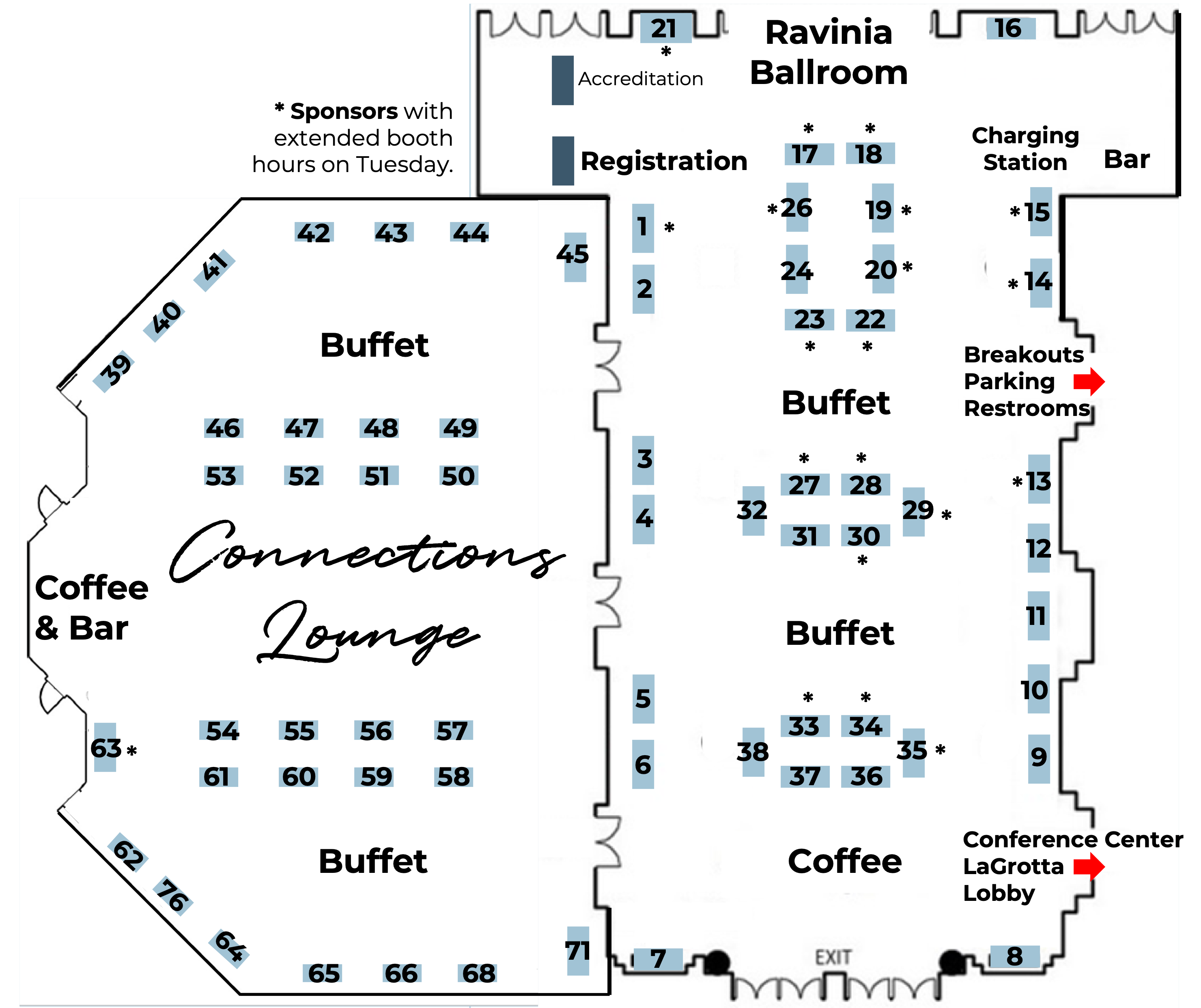 Those marked with an asterisk (*) are sponsors and/or those with extended booth hours.