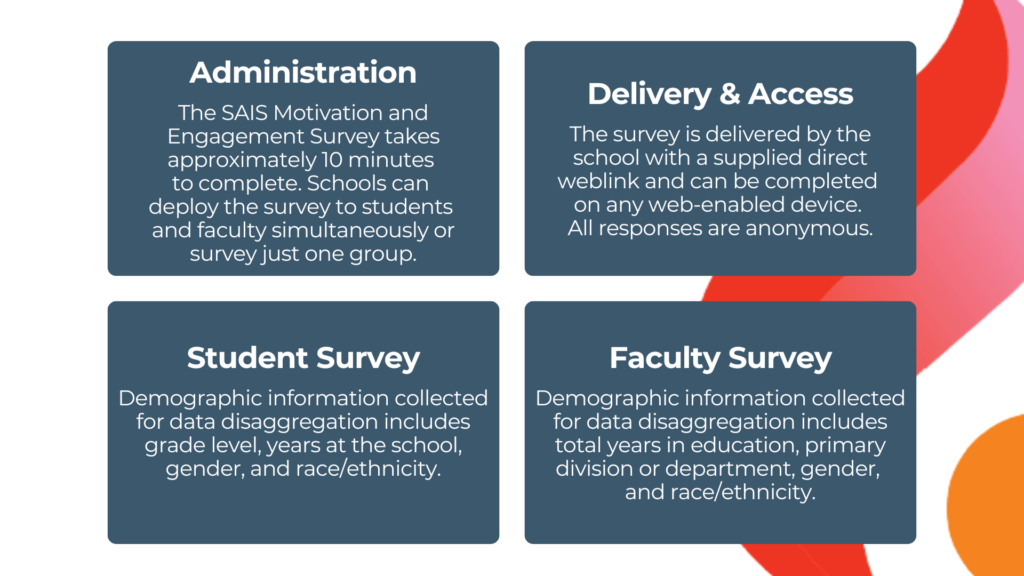 The Faculty Motivation and Engagement Survey gathers direct feedback from educators about workplace culture, well-being, and the factors that shape their professional experience at your school.